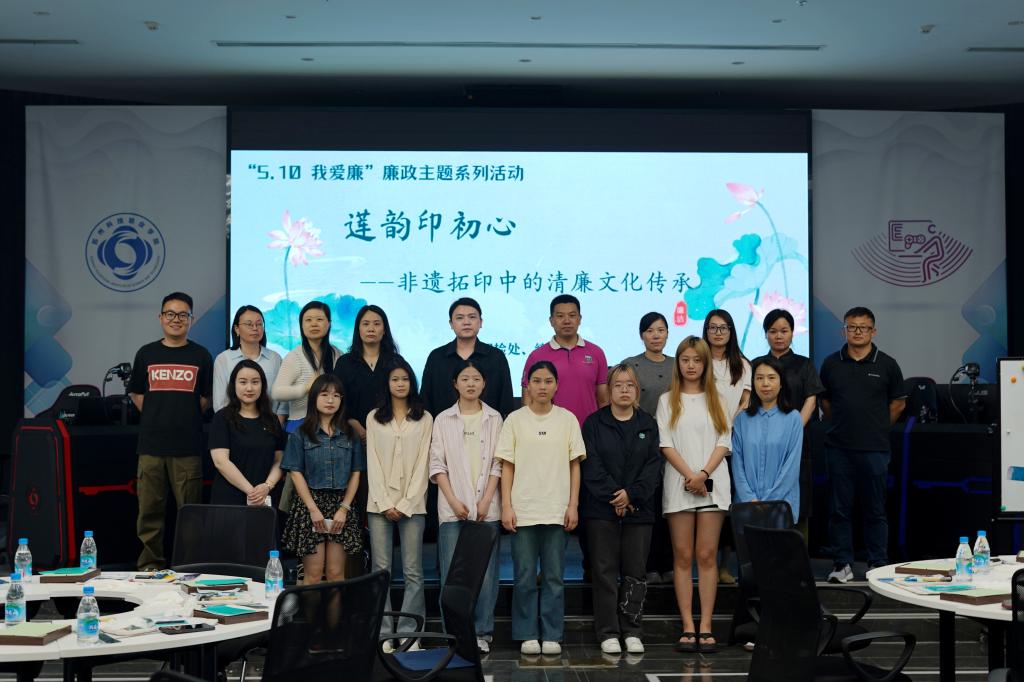 为传承中华优秀传统文化,强化教师廉洁从教意识,营造风清气正的校园文化氛围,5月14日下午,纪检处与统群处联合举办的“莲韵印初心”——非遗拓印中的清廉文化传承活动在若水楼205室顺利开展,16名师生共同体验了一场别开生面的文化与廉洁之旅。