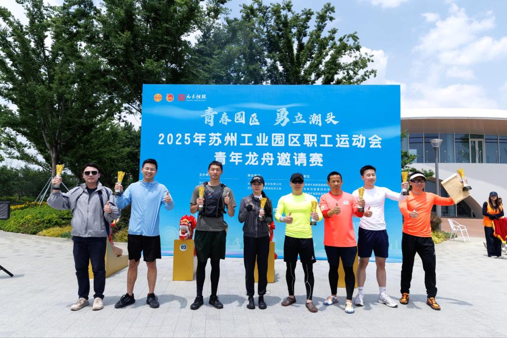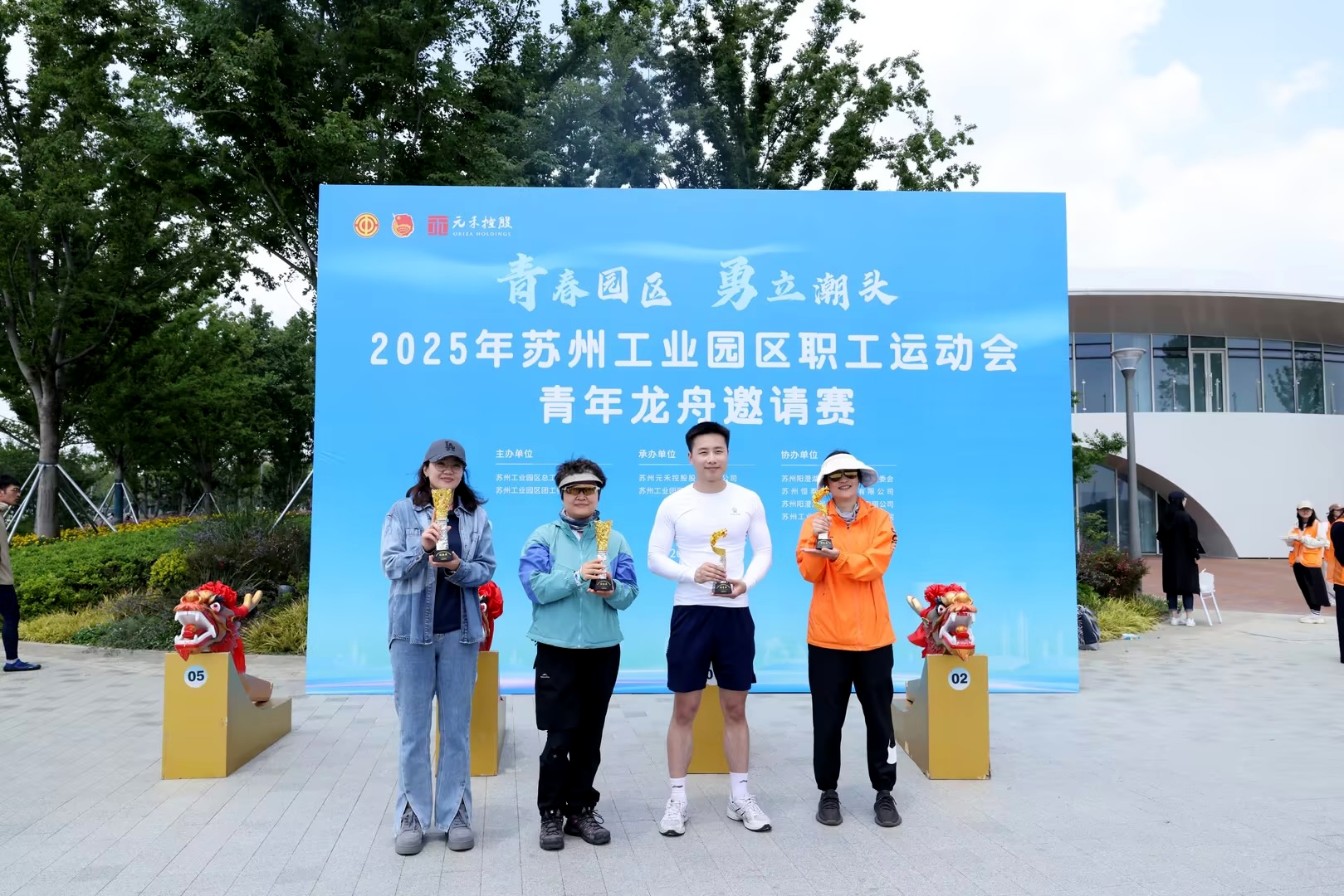 5月10日,由园区总工会、园区团工委主办,元禾控股、园区机关工会承办的2025年苏州工业园区职工运动会青年龙舟邀请赛在苏州工业园区青剑湖水域燃情开赛,本次赛事吸引了来自园区机关、国有企事业单位等20支参赛队伍近400名运动员参赛,在激烈的比拼中,我校孺子牛教工龙舟队和女子龙舟队分别斩获男子组300米直道竞赛第一名、女子组300米直道竞赛第一名两项冠军。