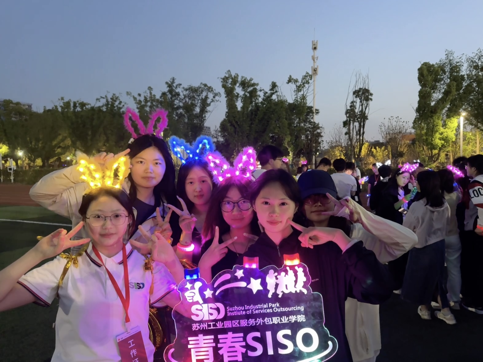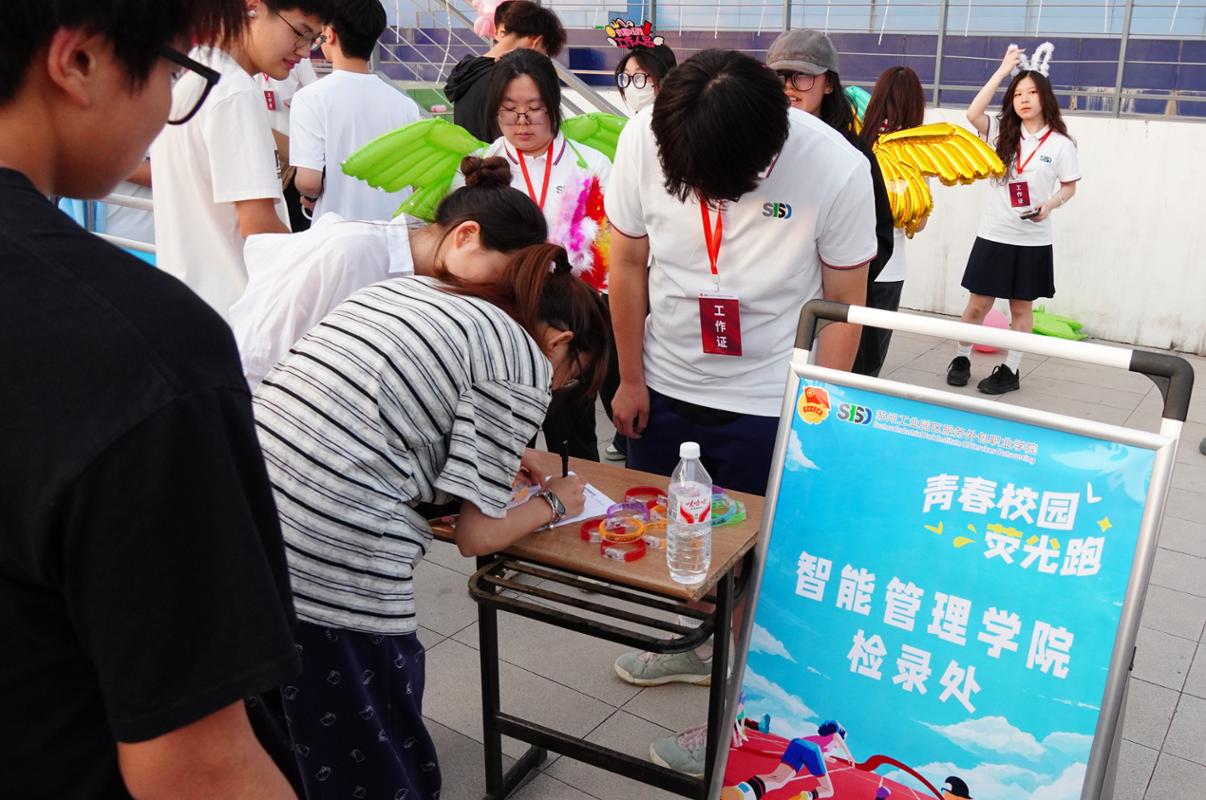夜幕未至,激情先燃,在工作人员的指引下,每位参与者化身“追光少年”——荧光手环跃动腕间,荧光发箍闪烁发梢……当数百份流动的霓虹在操场汇聚,夏日夜空下,同学们正用脚步谱写最炫目的青春篇章。