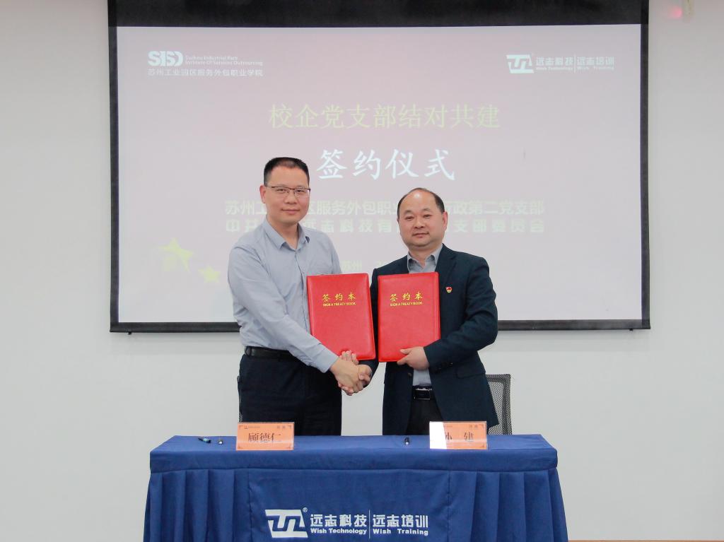 为深入贯彻落实新时代党的建设总要求,推动党建工作与产业发展深度融合,促进校企党支部优势互补、协同发展,4月15日下午,我校行政第二党支部与苏州远志科技有限公司党支部正式签署结对共建协议,双方将以党建为纽带,在组织建设、人才培养、资源共享等领域展开深度合作,共同探索基层党建与产业创新融合新路径。苏州远志科技有限公司党支部书记顾德仁、行政第二党支部书记孙建及行政第二党支部成员参加了活动。