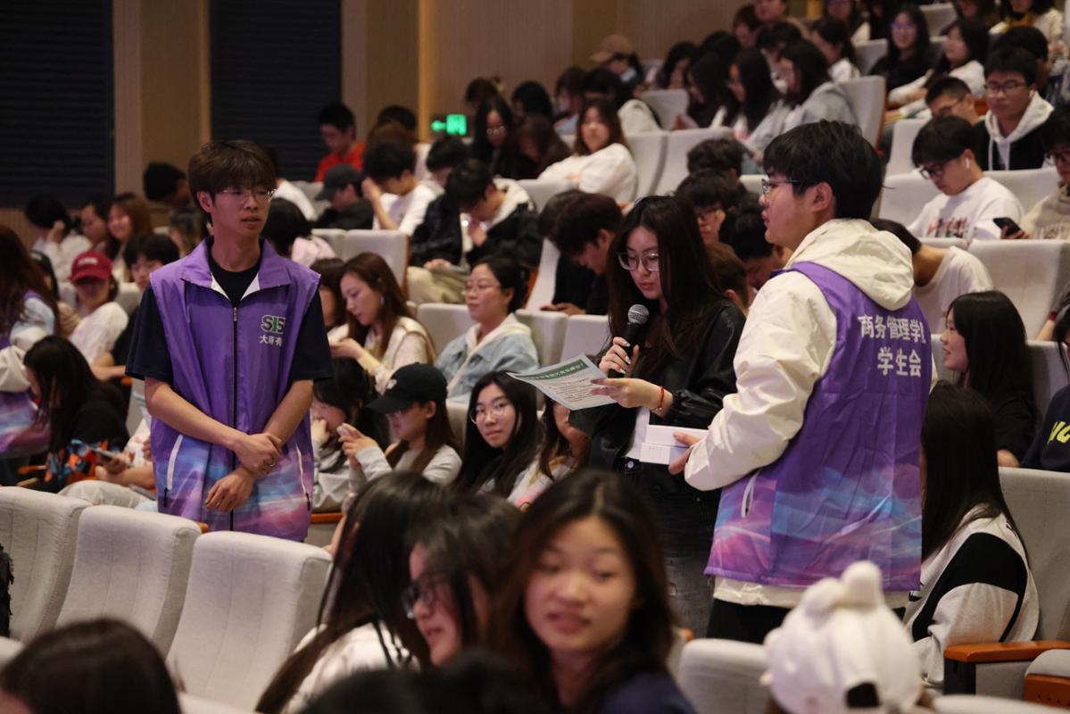 信息工程学院葛莉同学聚焦数字时代挑战,以《筑牢数家安全》为题做分享,呼吁青年学生在信息洪流中擦亮双眼、守牢底线。商务管理学院闫馨遥同学结合防诈实践,生动分享《反诈联盟之校园生存指南》,以真实案例揭露诈骗手段,提出“反诈意识即第一道防线”的行动倡议。