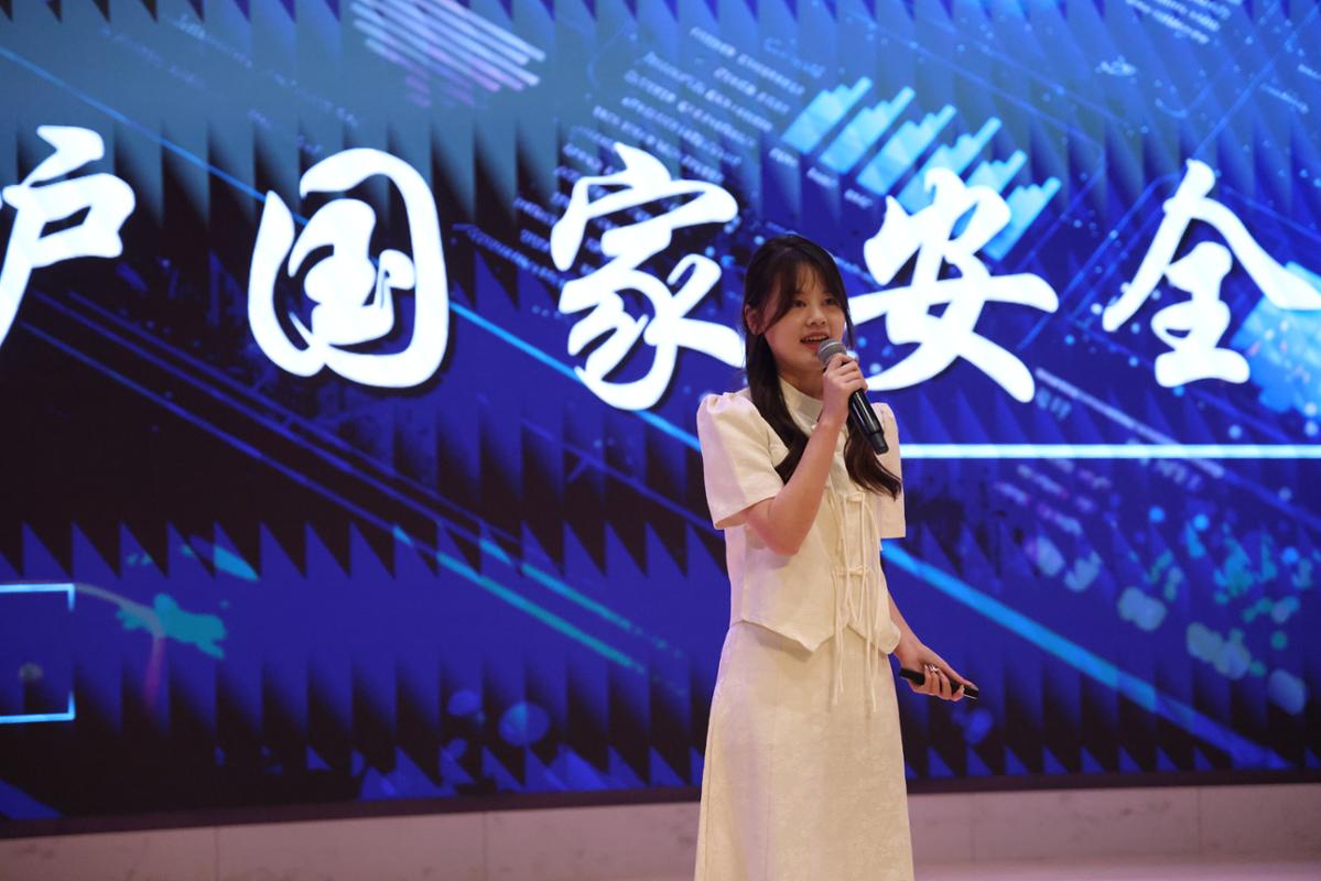 最后,宣讲员代表以诗朗诵《守护国家安全新长城》将整场活动推向高潮,同学们通过铿锵有力的语言与饱含深情的演绎,展现了新时代青年“以平凡之躯筑不平凡之墙”的壮志豪情。