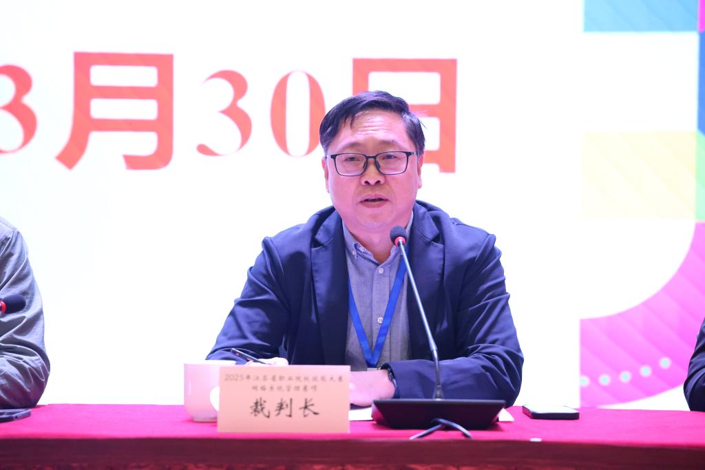 随后,梁广民宣读了本次比赛成绩。本次大赛共产生一等奖5项、二等奖10项、三等奖15项。其中,我校与无锡职业技术学院、江苏财会职业学院、南京铁道职业技术学院、江苏航运职业技术学院获得此次大赛一等奖。