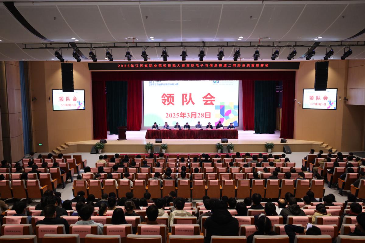 3月28日下午,2025年江苏省职业院校技能大赛网络系统管理赛项领队会在我校闻道楼二楼报告厅召开。本次大赛由江苏省教育厅、省发改委、省工信厅等15家单位主办,我校承办。大赛巡视员梅纪萍、赛项专家组长刘光杰、裁判长梁广民、仲裁员李涛、监督员苏前义、联络员倪贵华;我校党委副书记、校长权俊良,副校长冯瑞、全体领队、指导教师、参赛选手、技术支持企业及我校相关人员参会。会议由梅纪萍主持。