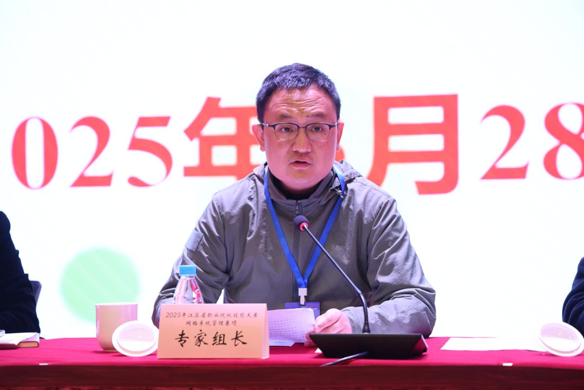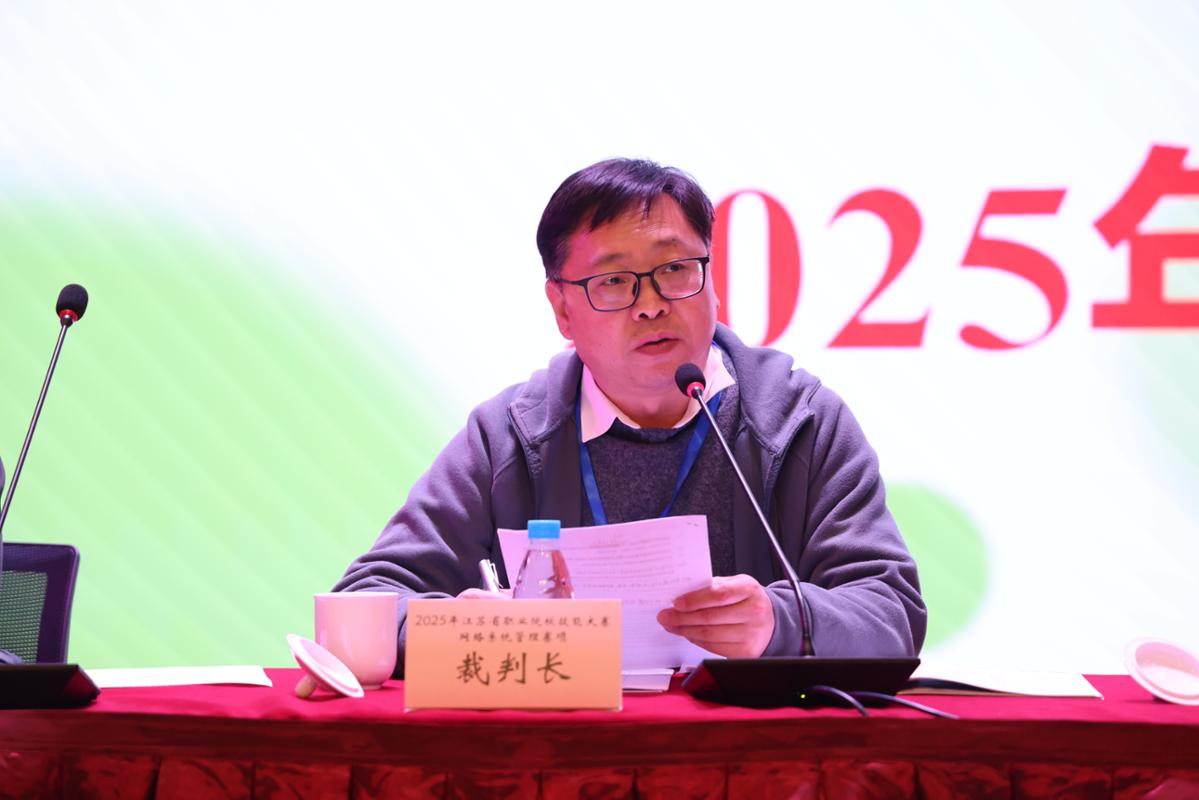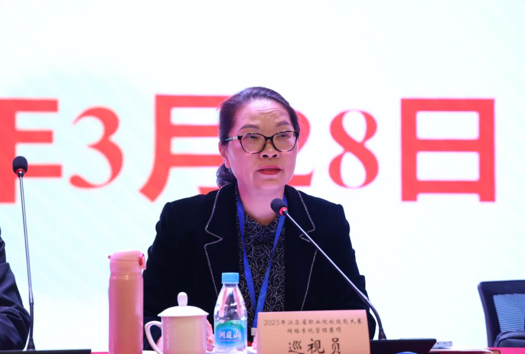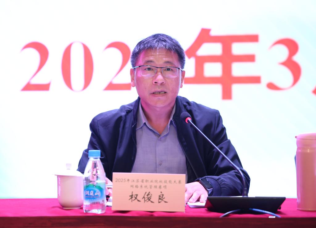 权俊良在致辞中介绍了苏州工业园区和学校发展的情况。他表示,此次大赛作为全省计算机网络专业教育领域的顶尖赛事,不仅是一次技能的大比武,一场实力的大练兵,更是职业院校推进相关专业高质量发展的重要展示平台。通过此次赛事,充分展现各院校在计算机网络专业领域的教学成果与学生的专业素养,为进一步深化职业教育改革、推进计算机网络专业内涵建设提供强大助力。他希望选手们在赛场上奋勇拼搏、全力以赴,展示良好形象,发挥最佳水平,争取优异成绩。