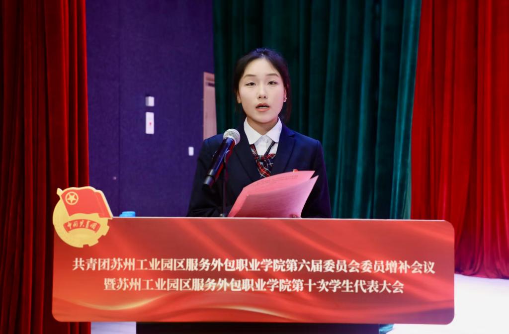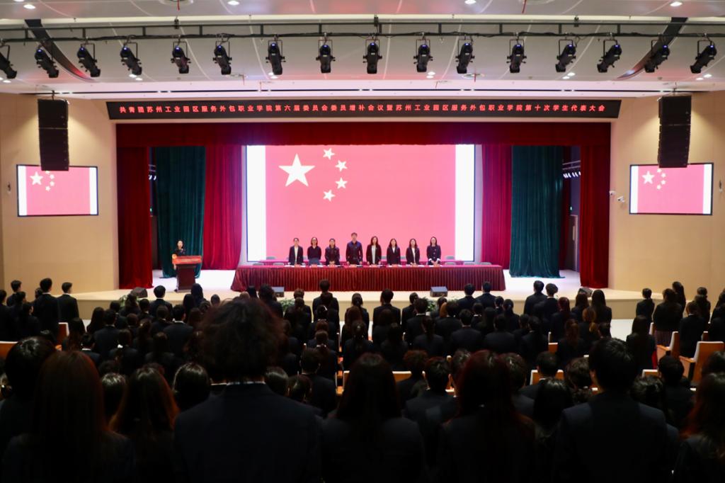 3月26日,共青团苏州工业园区服务外包职业学院第六届委员会委员增补会议暨苏州工业园区服务外包职业学院第十次学生代表大会在我校闻道楼召开。我校副校长杜梓平、全校各级团学组织、大会全体代表200余人参加会议。