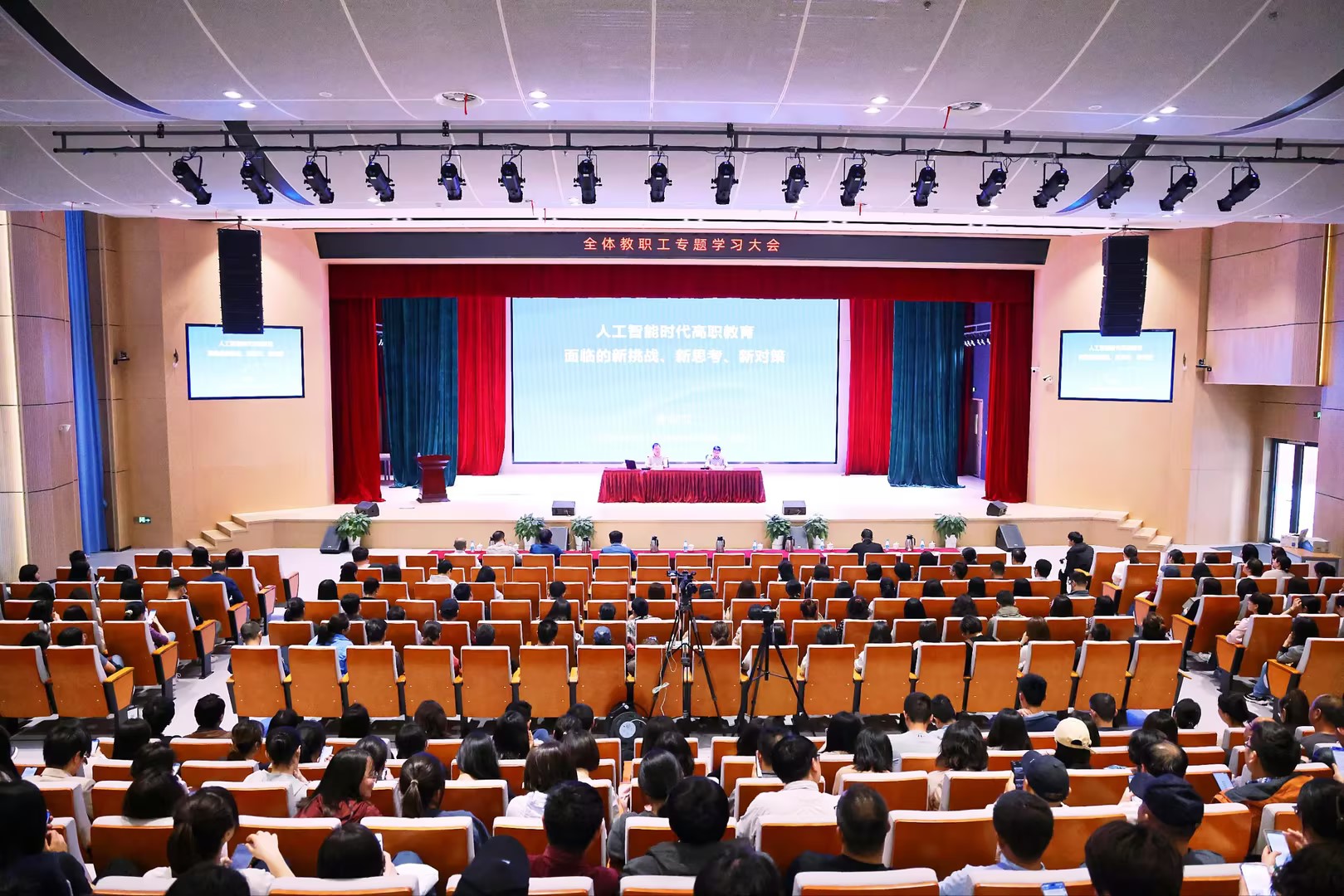 3月26日下午,我校特邀深圳职业技术学院(现深圳职业技术大学)创校校长、广东岭南职业技术学院原校长、全国著名职教专家俞仲文教授作了一场主题为《人工智能时代高职教育面临的新挑战、新思考、新对策》的精彩讲座。全体教职工在闻道楼二楼报告厅聆听了讲座。讲座由我校党委副书记、校长权俊良主持。