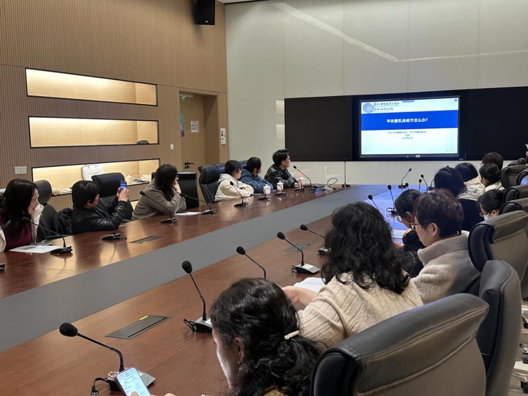 3月5日下午,“守护健康 共绽芳华”女性健康讲座暨体检报告解读活动在若水楼310会议室举行,活动吸引了众多女教工参与。本次讲座工会邀请到苏州大学附属第四医院甲乳外科的张喆医生和体检中心的医护人员。讲座中,张喆通过生动的案例与直观的图片展示,深入浅出地介绍了甲乳结节的成因、症状、危害以及早期筛查和规范治疗方法,让大家对这两种女性常见疾病有了更深入的认识,学习了日常自我检查的方法。讲座后,附四院体检中心的医护人员逐一为老师们进行体检报告解读,并给予个性化的健康管理建议。