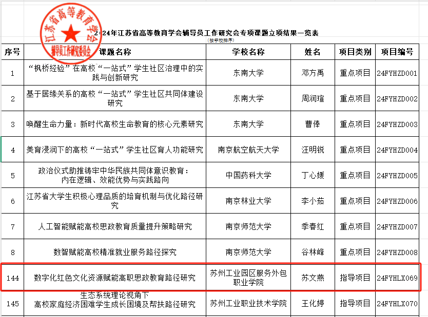 2024年江苏省高校辅导员工作案例、专项课题征集活动在省教育厅、省辅导员工作研究会组织下完成评审工作,最终遴选出优秀案例122项、专项课题176项。
