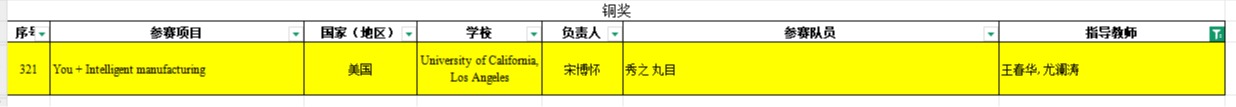 在我校的邀请下,来自美国加州大学洛杉矶分校的宋博怀同学担任了《You + Intelligent manufacturing》项目负责人。在王春华、尤澜涛两位老师历时多月的悉心指导下,该项目最终荣获国际赛道铜奖 。
