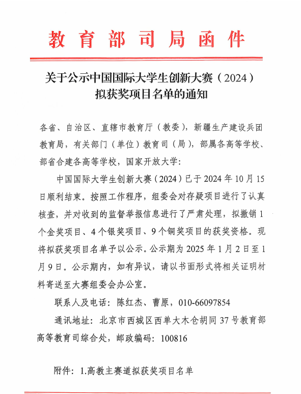 2024年6月,我校学工处(创新创业中心)向全校教师发布国际赛道报名意向征集,共有20余位老师响应报名,最终有10个项目在教育部网站递交了参赛材料。2024年10月15日,中国国际大学生创新大赛顺利结束,组委会对项目核查,于2025年1月2日在教育部“全国大学生创业服务网”公示了拟获奖名单,《You + Intelligent manufacturing》项目在公示名单之列。