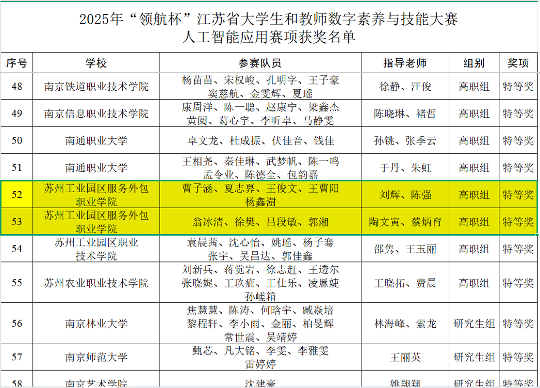 12月22日,从江苏省教育网络安全和信息化领导小组办公室获悉,我校在2025年"领航杯"江苏省大学生数字素养与技能大赛人工智能应用赛项决赛中斩获两项特等奖。10月26日,由江苏省教育厅、中共江苏省委网络安全和信息化委员会办公室联合主办的2025年"领航杯"江苏省大学生数字素养与技能大赛人工智能应用赛项决赛在南京邮电大学仙林校区落幕。本次大赛聚焦人工智能前沿技术与应用,推动数字素养与技能培养,吸引了全省高校的广泛关注与积极参与。