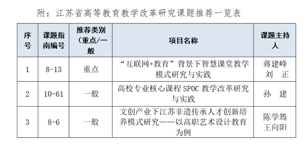 江苏省高等教育教学改革研究课题推荐结果公示